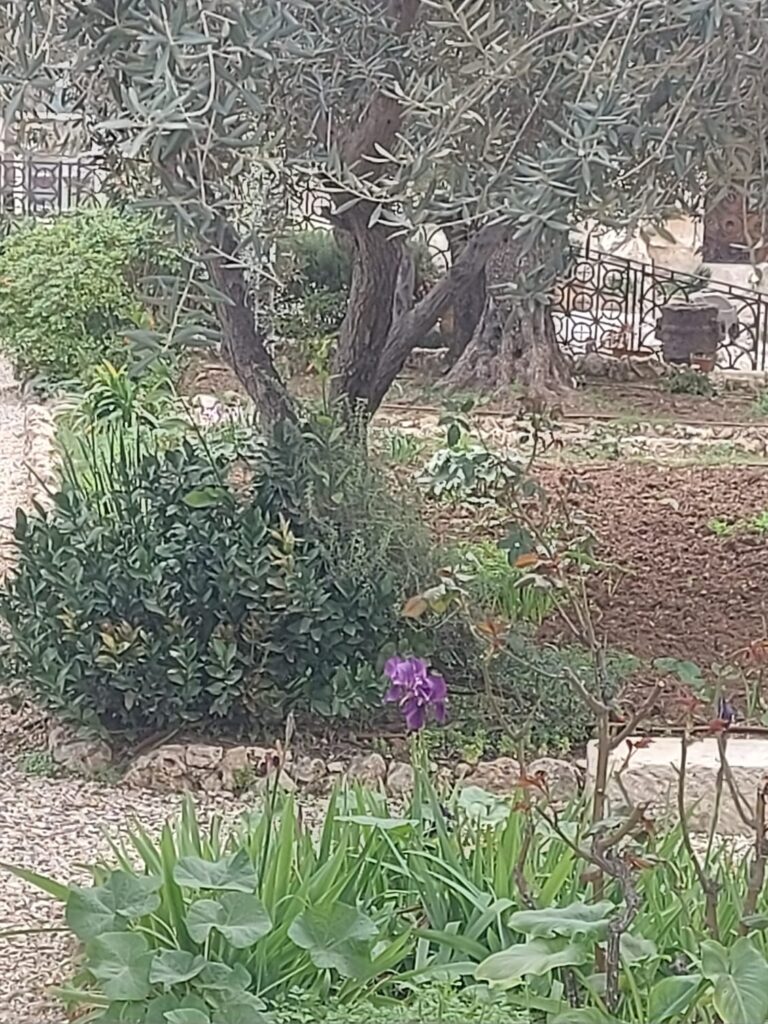 Saat ini diantara pohon-pohon zaitun di taman, ada banyak bunga juga di tanam di sana. Bunga yang sangat dikenal adalah mawar. Namun juga ada yang berbeda. Salah satu yang menarik; bunganya ungu cenderung hitam, namanya black Iris.