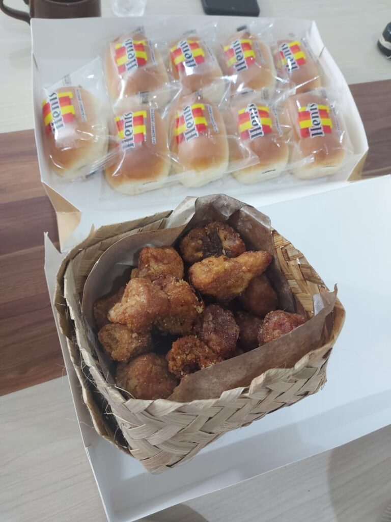 Di meja ada dua pilihan: gethuk goreng khas Sokaraja, dan roti. Keduanya bisa dipilih untuk dinikmati.