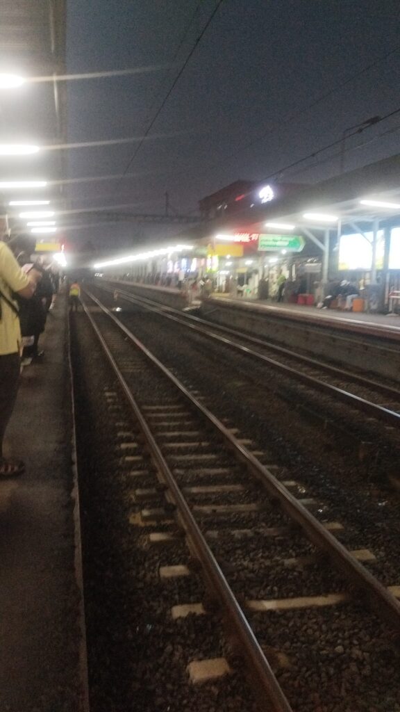 Selama kereta belum tiba, mereka menanti “si ular besi” dengan sabar di depan rel, di belakang garis kuning. Berdiri diam, orang melakukan berbagai aktivitas; ada yang diam saja, mendengar musik, bermain gadget, dan lainnya. Beruntung sekarang KRL dan kereta lainnya yang merupakan kereta jarak dekat dan jauh sudah tepat waktu.