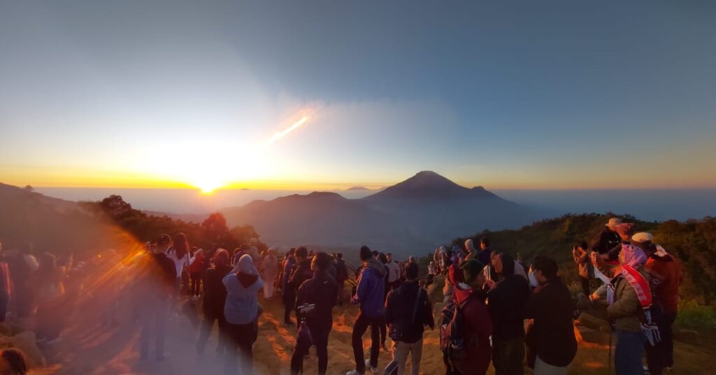 Menikmati matahari terbit di ketinggian gunung atau bukit menjadi kesenangan banyak orang. Di Sikunir dari pagi buta orang berbondong-bondong menaiki punggung bukit. Langkah demi langkah diayunkan dari bawah; ada yang dengan langkah cepat atau bahkan berlari, namun juga ada yang berhenti setiap satu atau beberapa langkah. Semua berjuang mencapai puncak bukit.